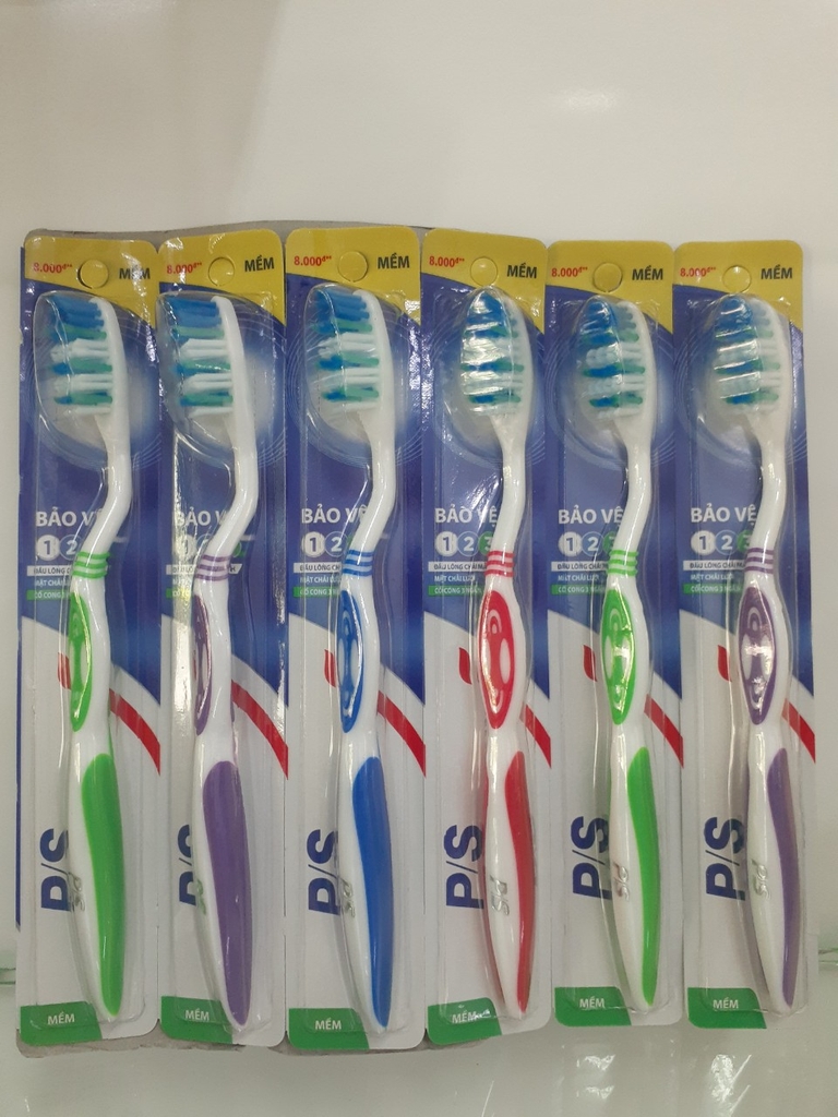 Bàn chải đánh răng P/S thương hiệu Anh & Hà Lan nổi tiếng, nhiều người tin dùng. Bàn chải P/S Bảo vệ 1 2 3 lông mềm với thiết kế độc đáo mang lại 3 tác động: ngừa sâu răng, làm trắng răng, cho hơi thở thơm mát. Rửa sạch bàn chải sau khi sử dụng