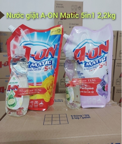 Thông tin sản phẩm: Nước giặt A-ON Matic Túi 2,2kg giặt và xả 5 trong 1 (Loại bỏ mùi hôi, Kháng khuẩn, Siêu sạch xoáy bay vết bẩn, Thơm ngát, Mềm mại bảo vệ sợi vải) với công nghệ Enzyme Xanh đột phá kết hợp với hoạt chất làm mềm vải và ngăn tái bám bẩn trở lại cho sức mạnh giặt tẩy vượt trội.