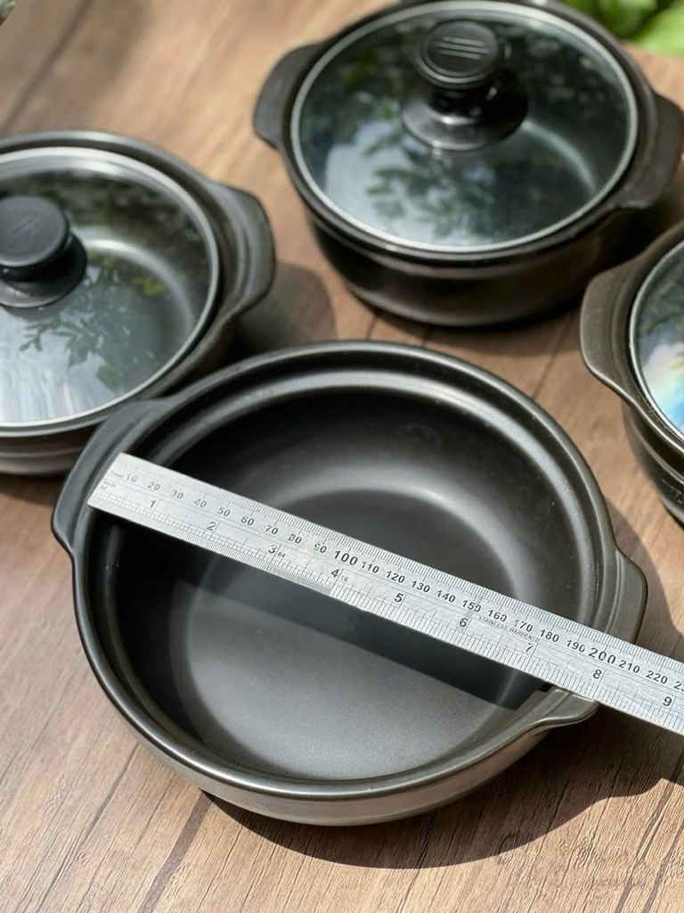 Chảo lẩu inox hai quai 3 đáy+ nắp kính, lòng trong inox Nanocook